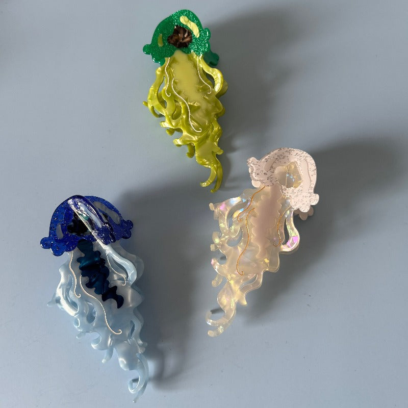 Dive into whimsical elegance with this jellyfish-inspired hair claw. Its flowing, sculpted design adds a sense of movement and charm to any hairstyle, while the smooth curves and lightweight construction ensure a secure and comfortable hold. Perfect for dreamers, ocean lovers, or anyone looking to add a playful, ethereal touch to their look.