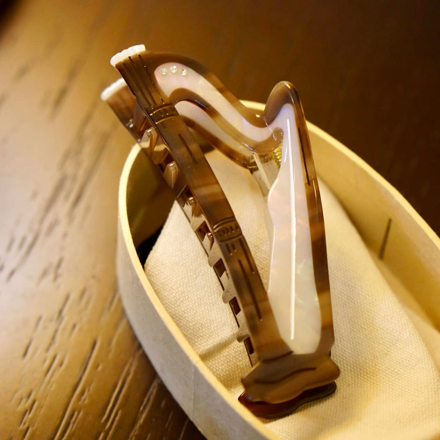 Add a touch of musical elegance to your hairstyle with the Harp Music Hair Claw. Crafted from high-quality cellulose acetate, this beautifully designed claw clip combines style and function, keeping your hair secure while elevating your look with a subtle, artistic flair.