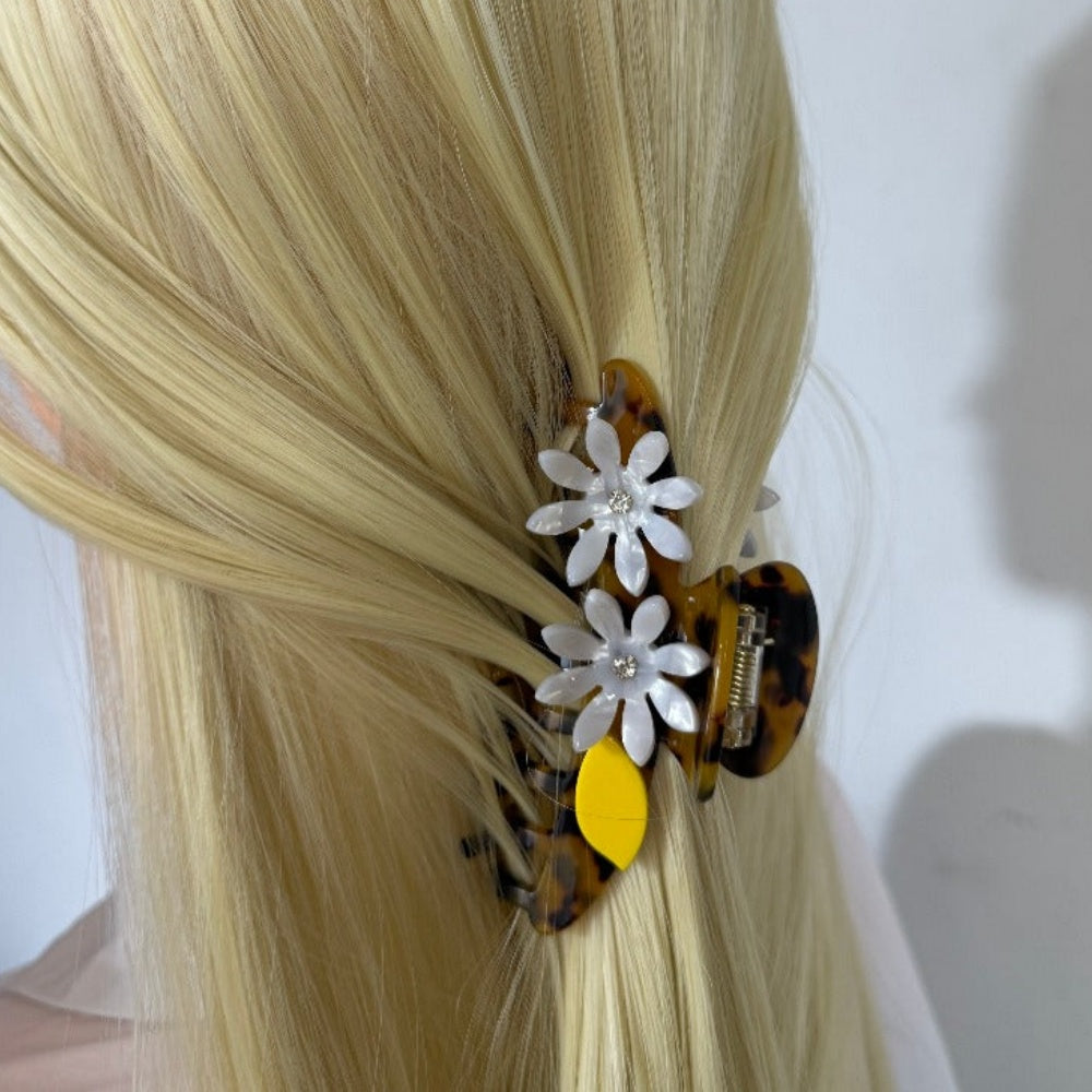 Bring a touch of whimsical charm to your hairstyle with this daisy-inspired hair claw. Light, cheerful, and delicately crafted, it captures the soft beauty of a bloom plucked from a dream. Its playful design adds a gentle, uplifting touch, like a little sunshine woven into your hair.